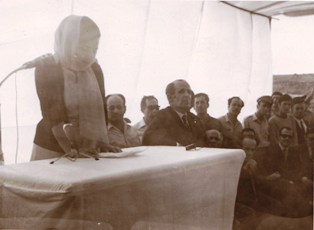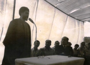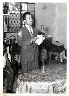 في حسينية النبطية عام 1958 تحت صورة الرئيس الراحل عبدالناصر