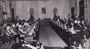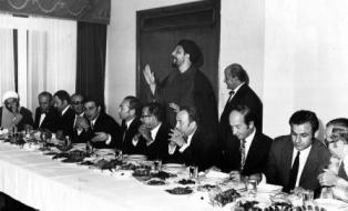 الزملاء الذين اجتمعوا في منزل الزعيم الأسعد ويبدو إلى يمينه