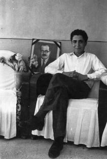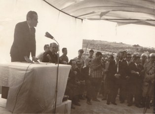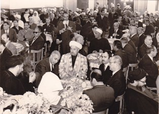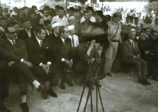 في حسينية النبطية عام 1958 تحت صورة الرئيس الراحل عبدالناصر